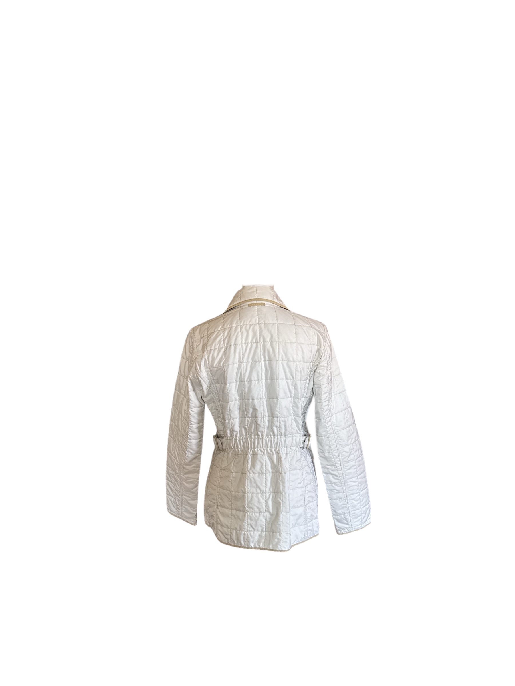 GIACCA LEGGERA TRAPUNTATA DI COLORE BIANCO CON MOTIVO A QUADRI.