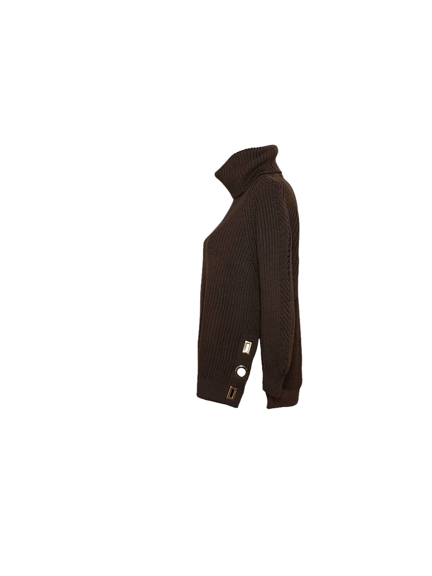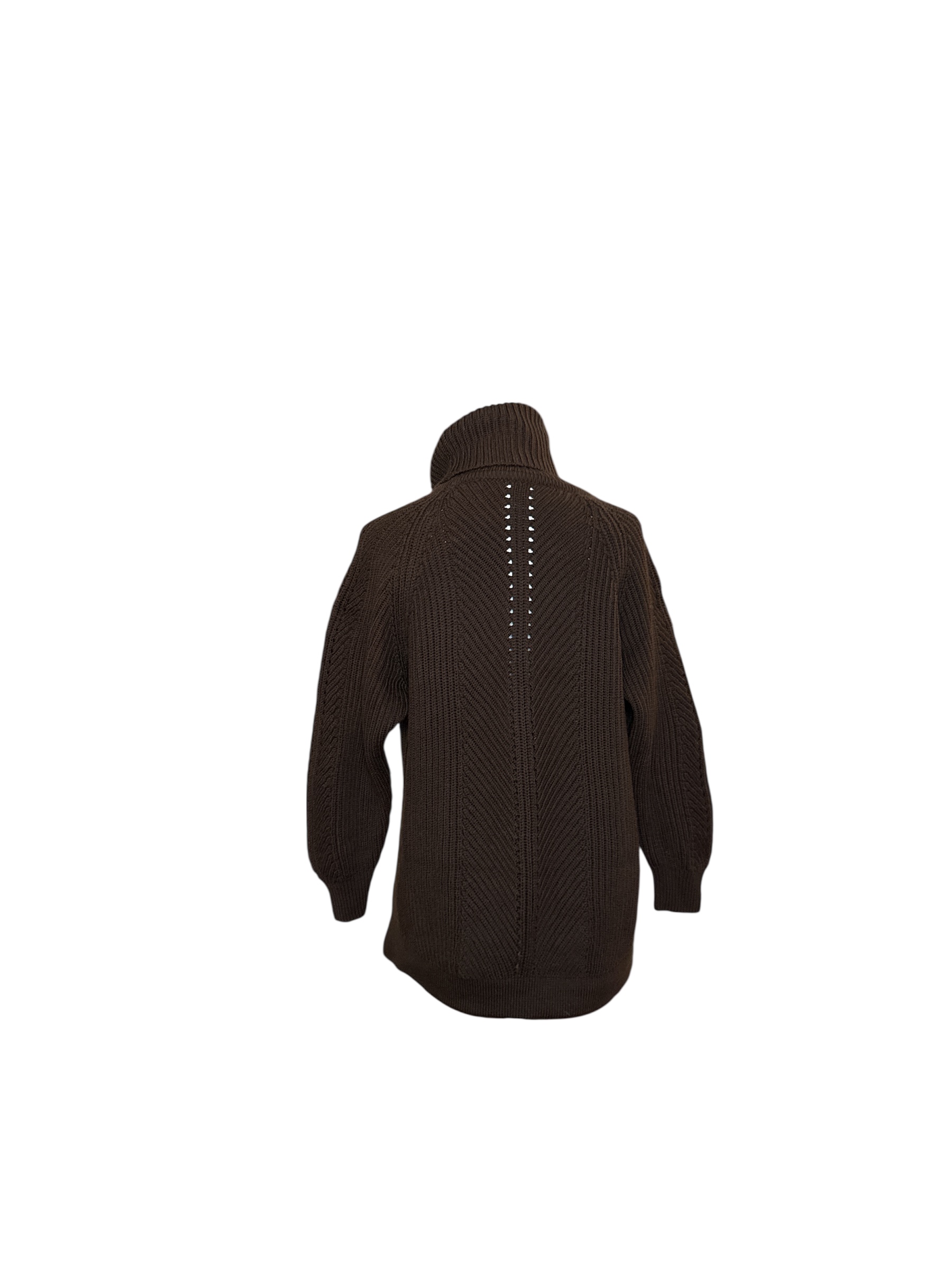 Collo alto a dolcevita morbido e lavorazione a coste con motivo centrale traforato verticale sul davanti,