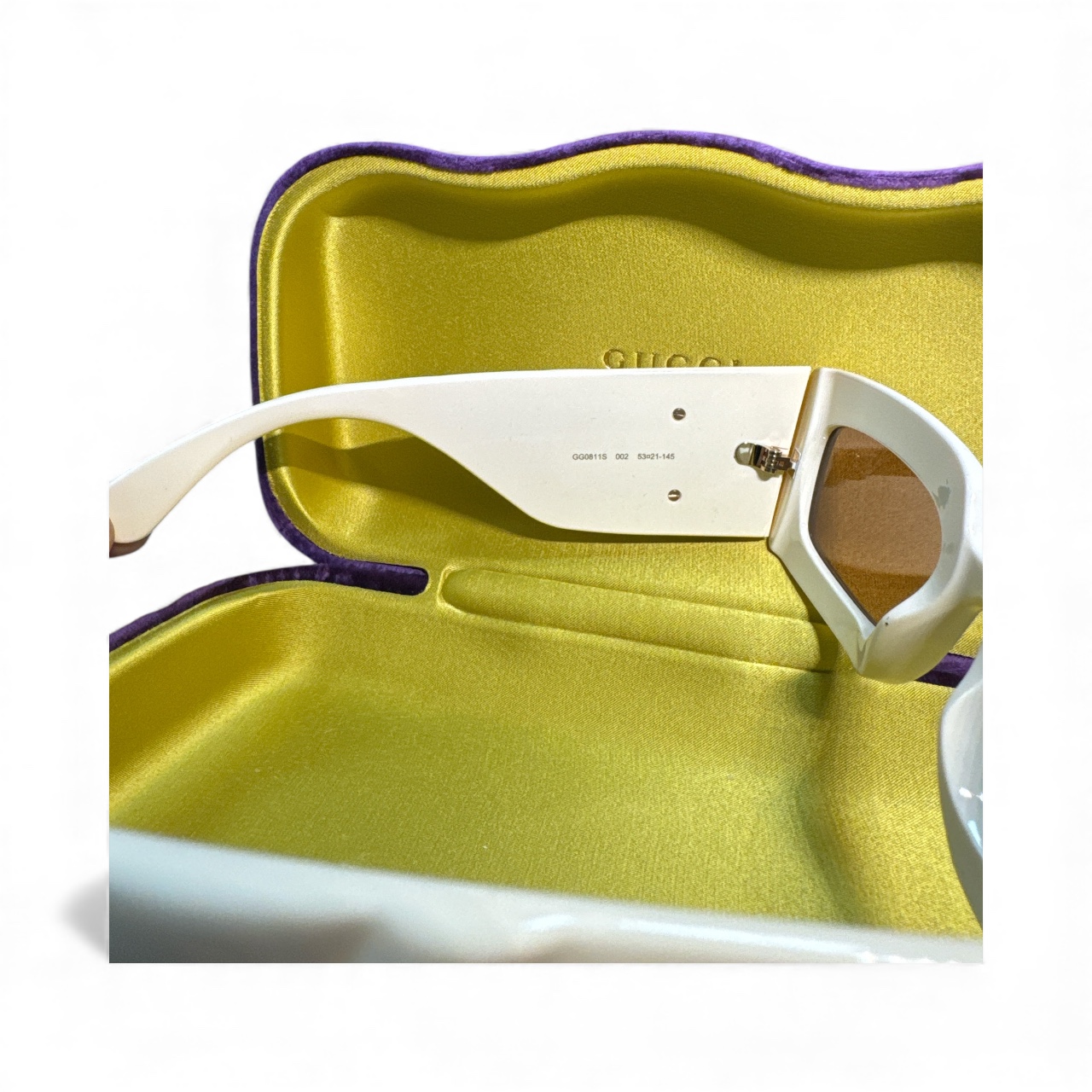 Occhiali da sole Gucci modello rettangolare bold con linee spesse e decise.