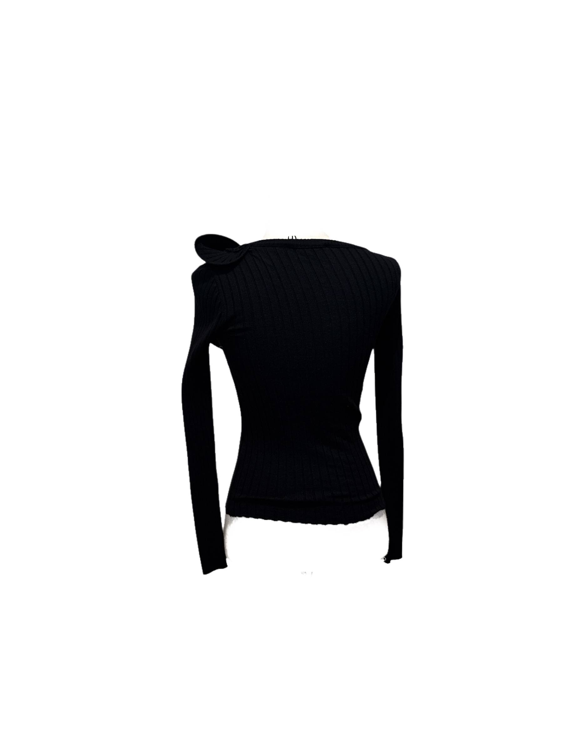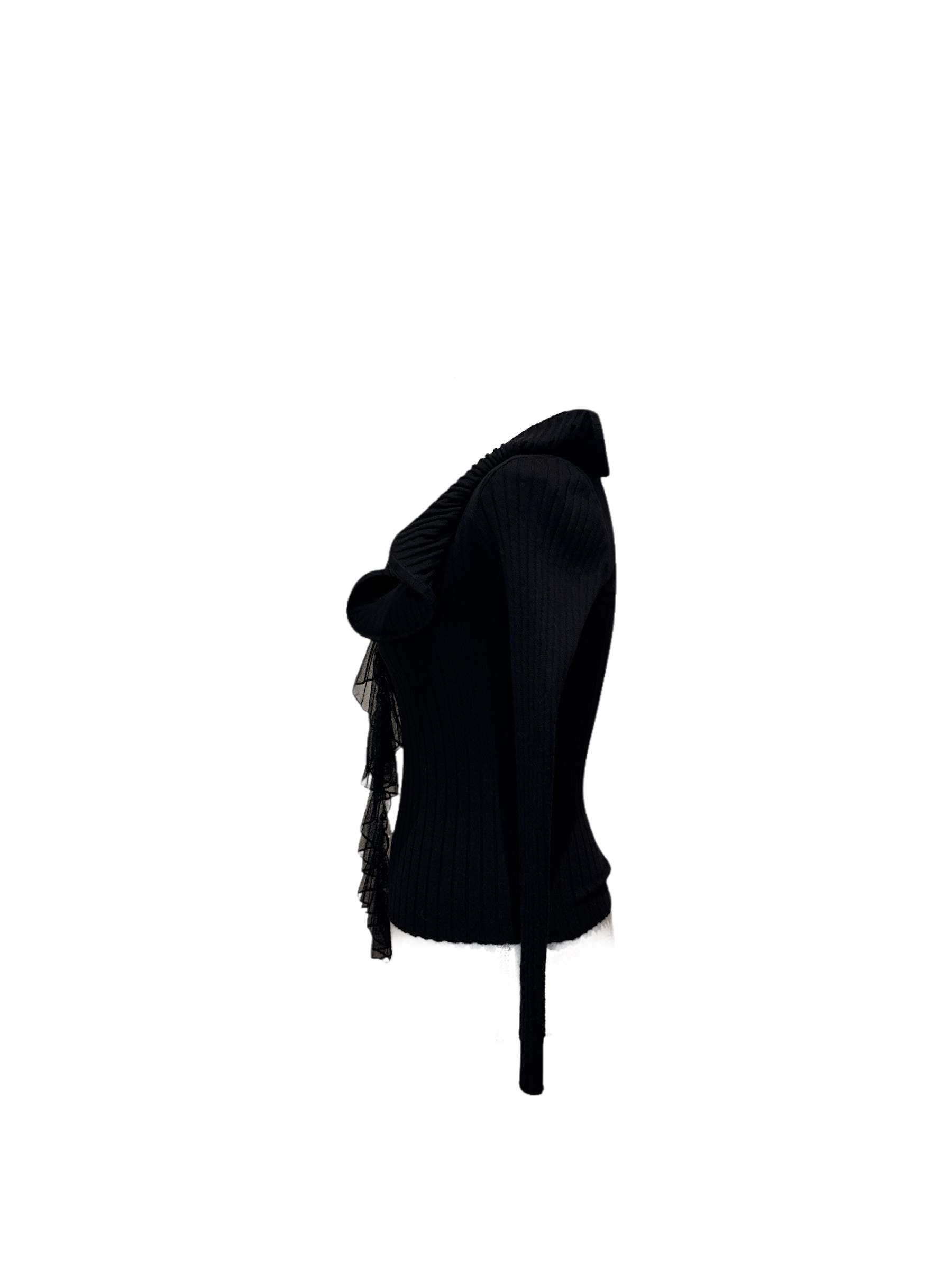 Maglia Haveone nera con scollo a cuore leggero con una particolare lavorazione di volant.