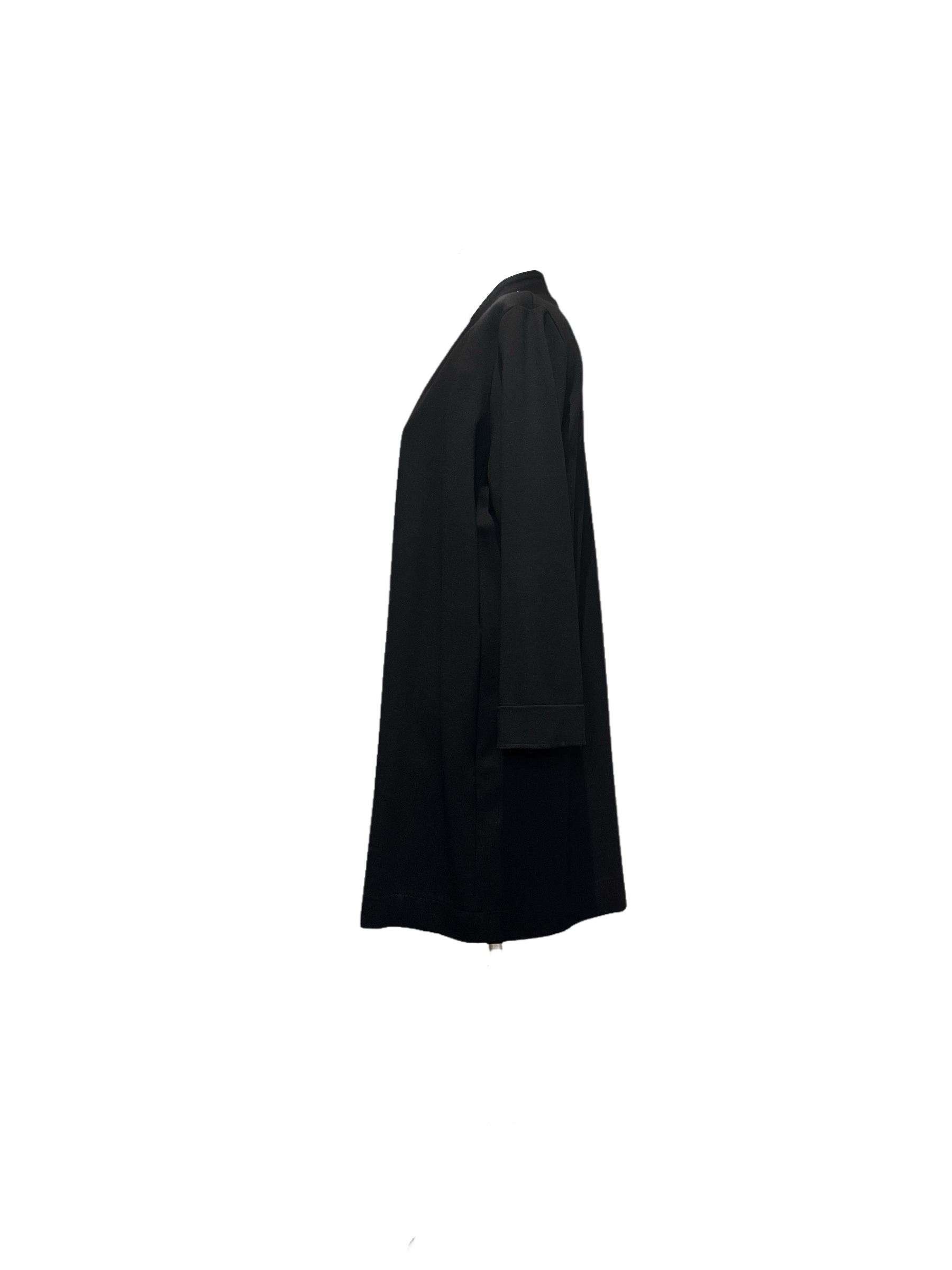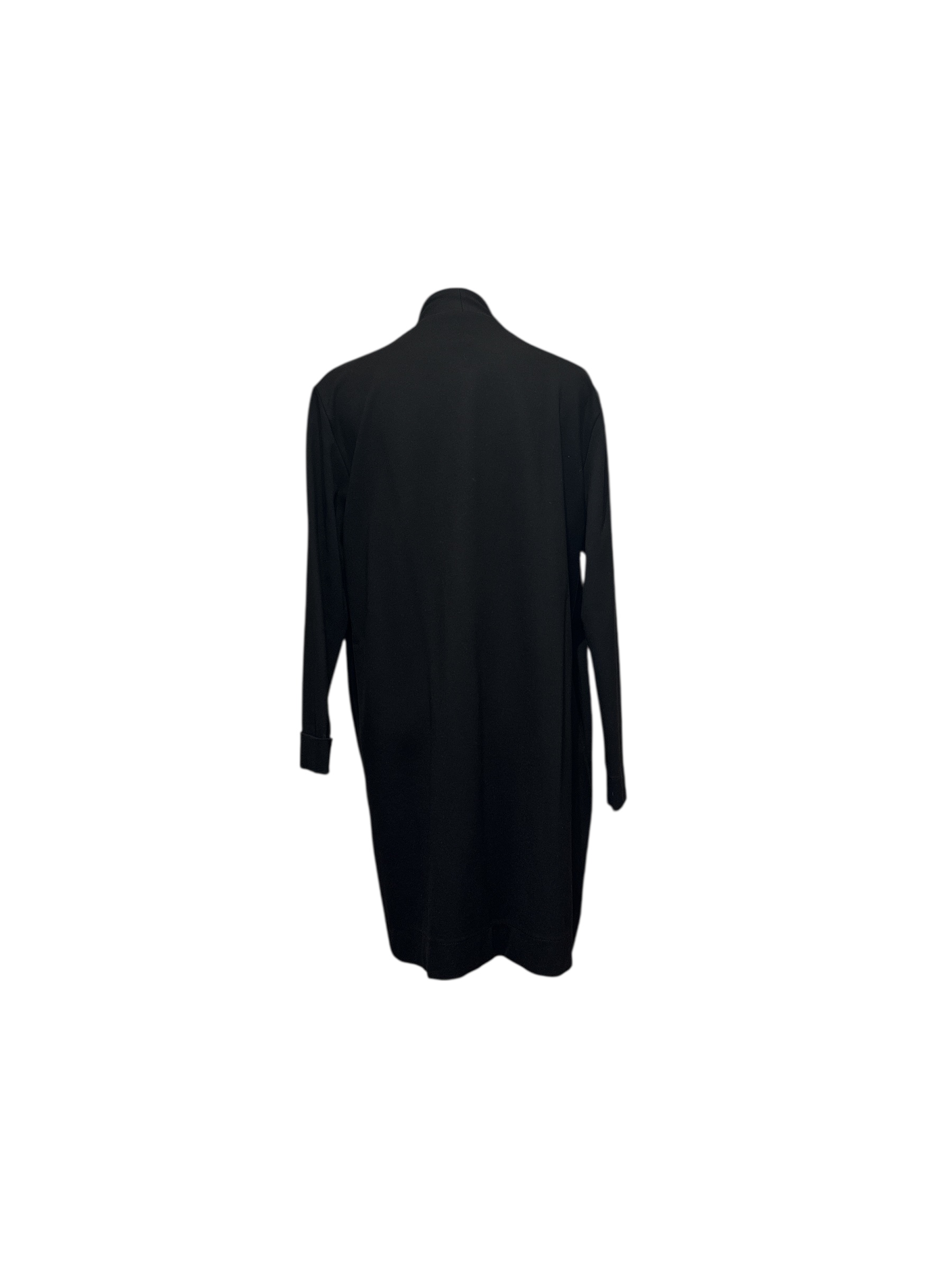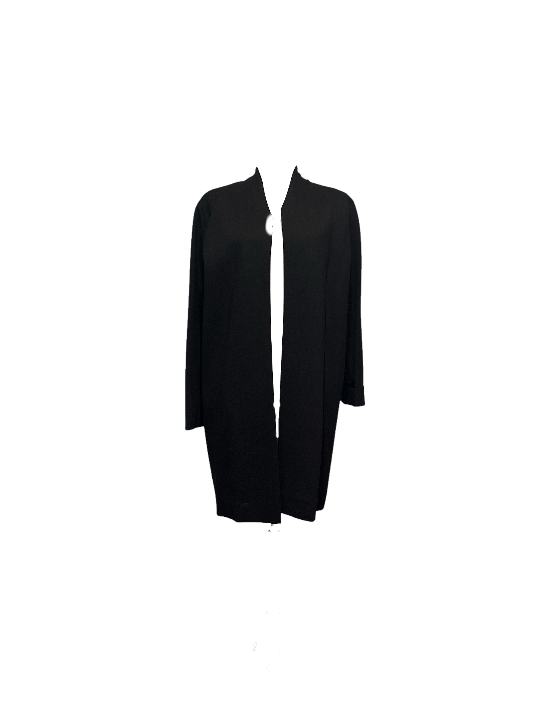 Giacca Icon Unique leggera nera, taglio lungo e dritto senza bottoni e chiusura frontale.