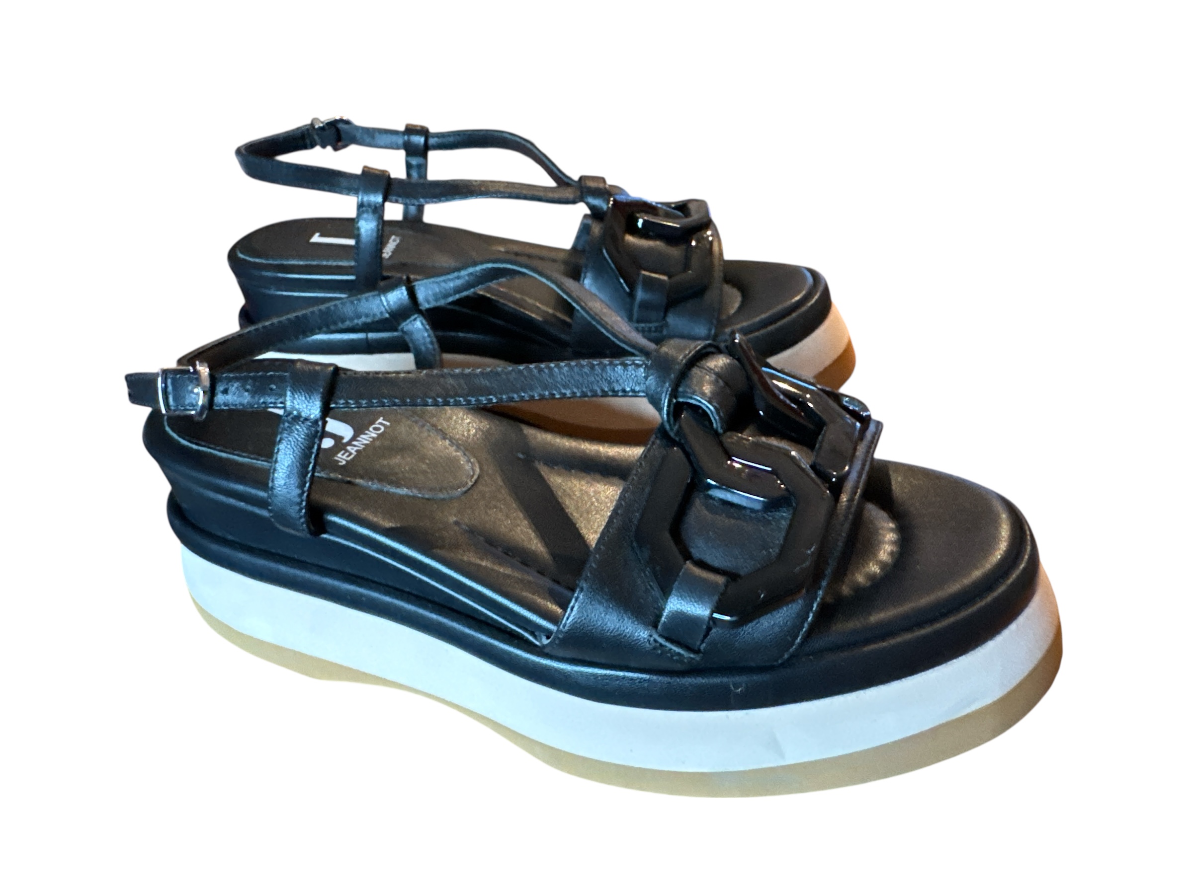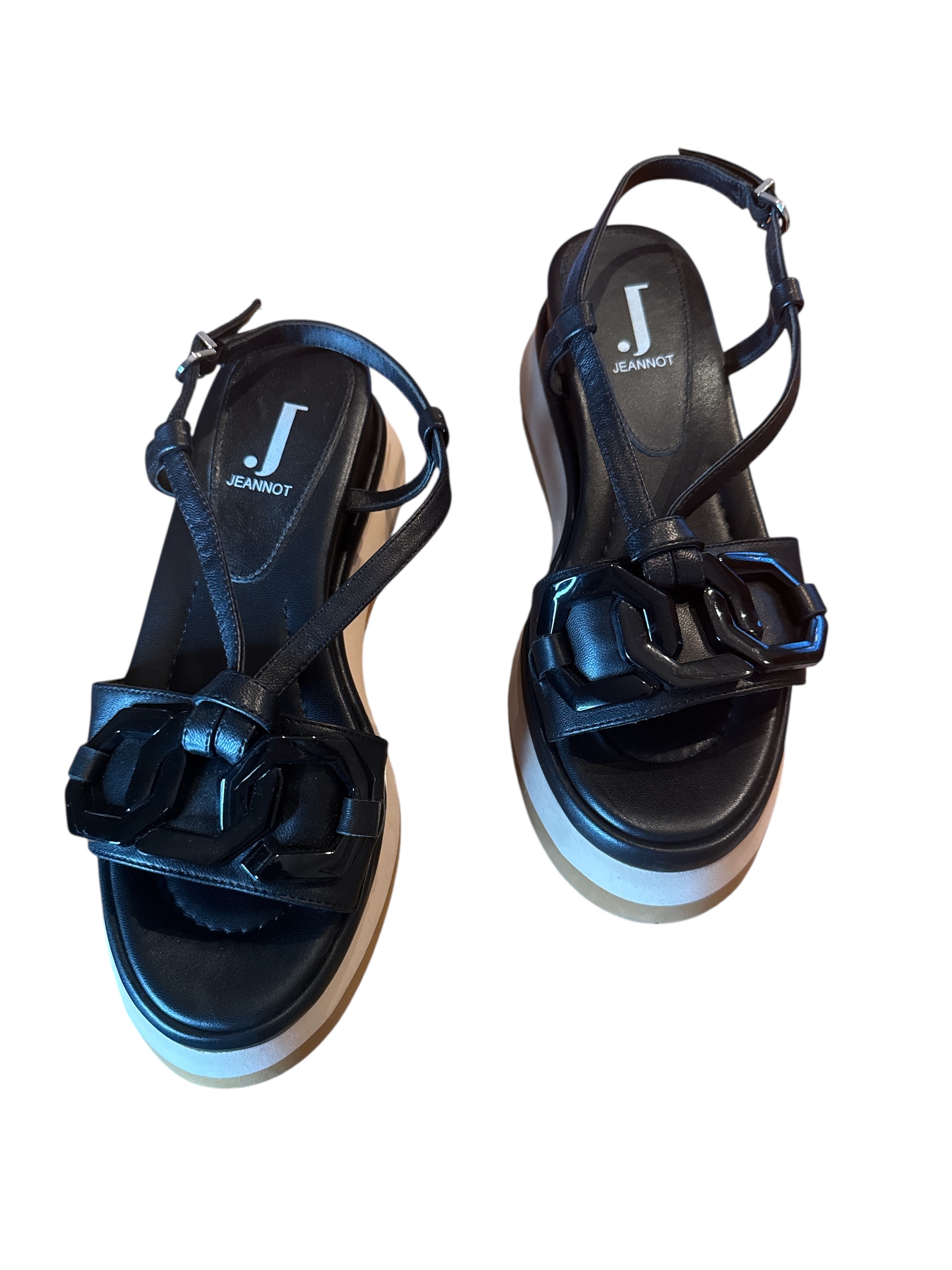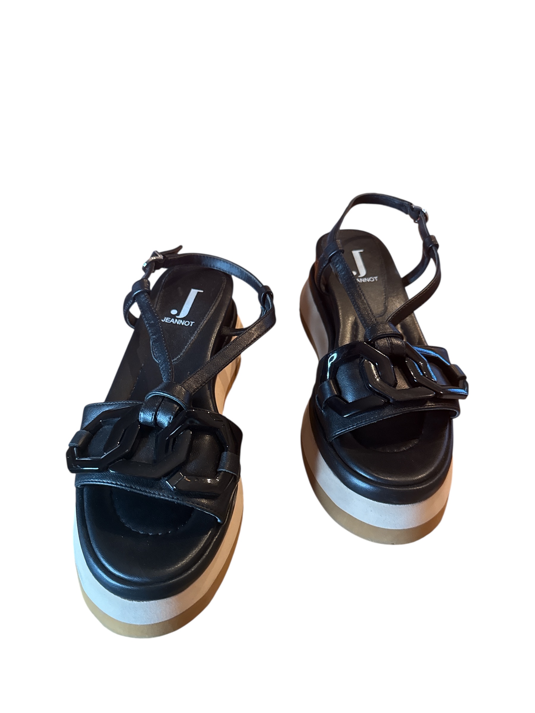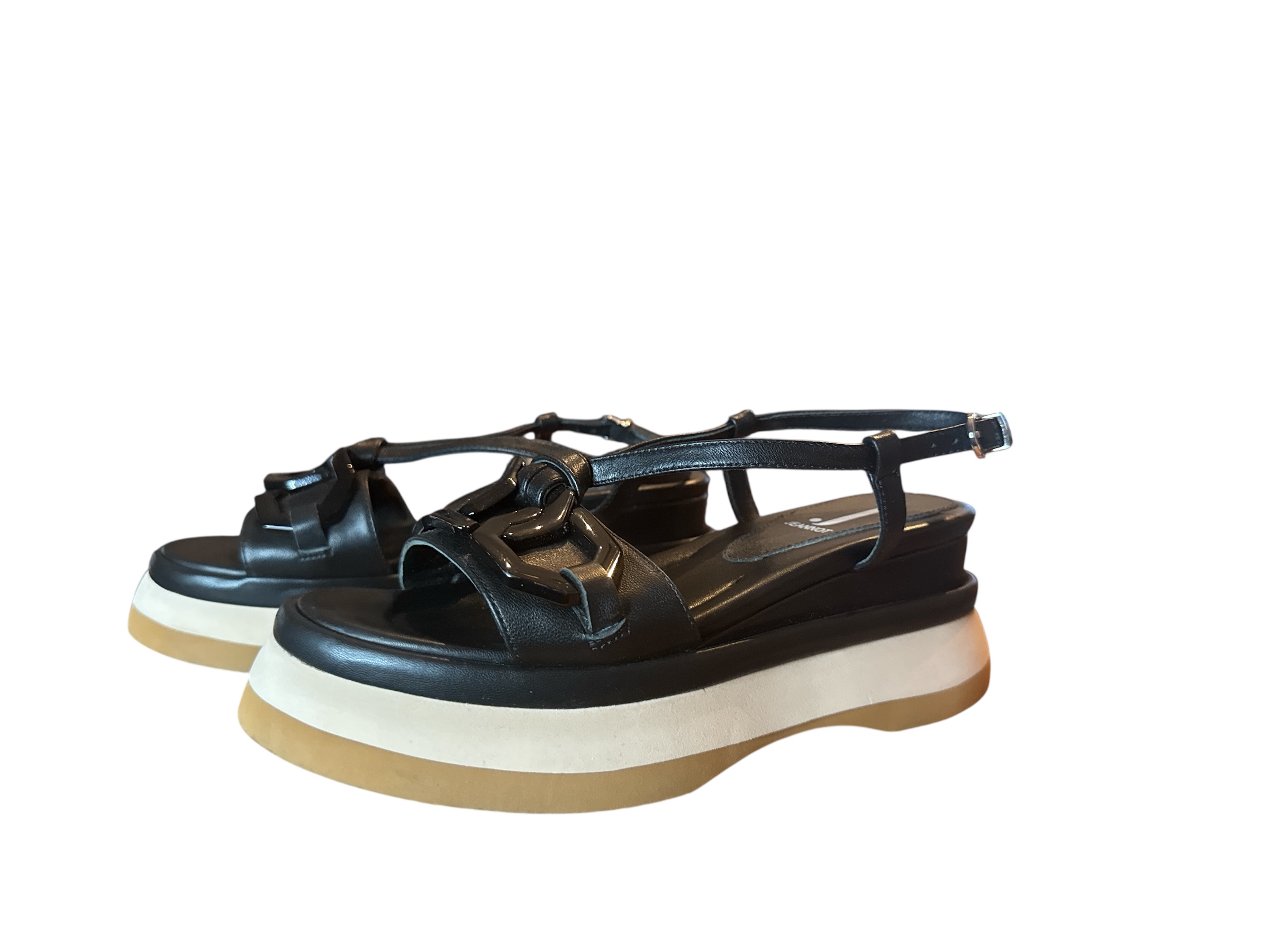 Sandali neri con zeppe e plateau di colore nero e bianco.