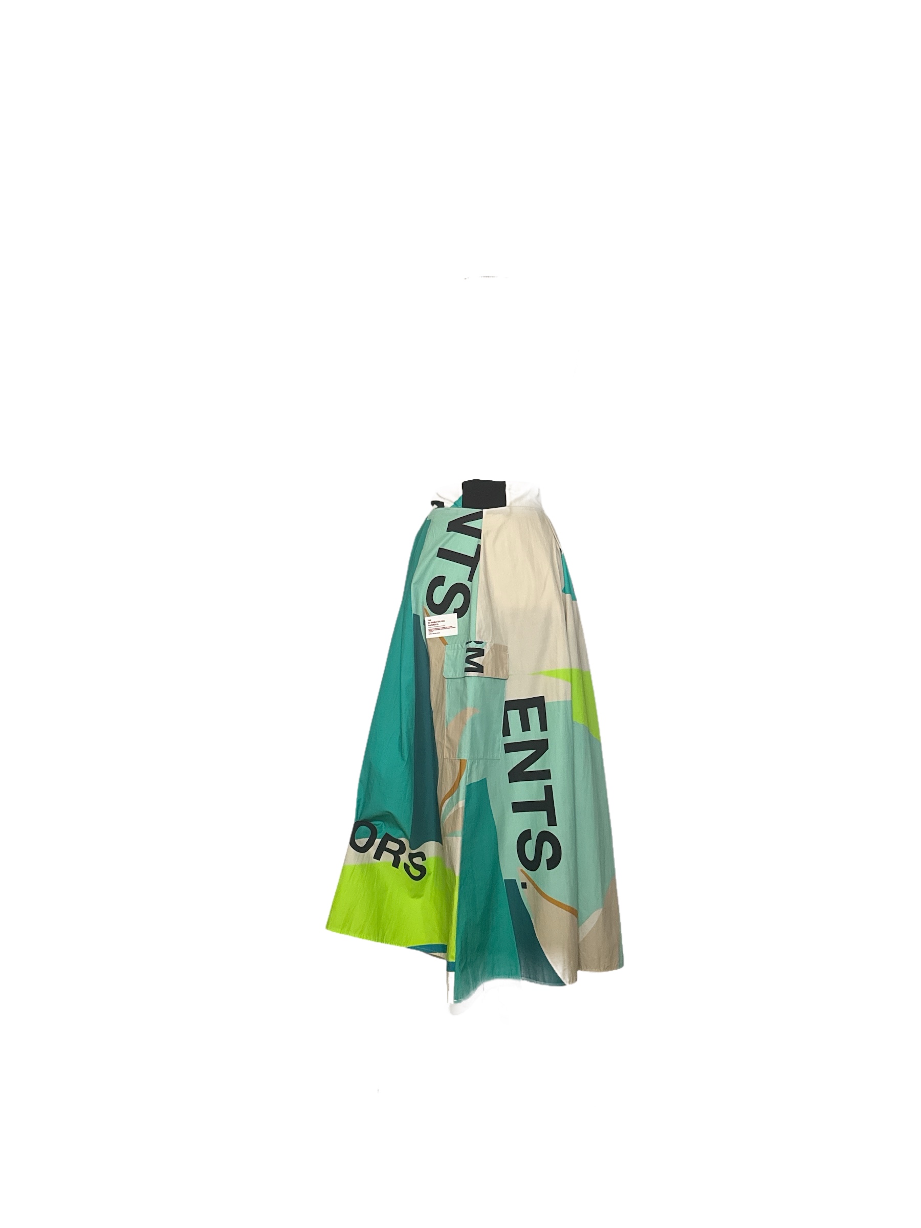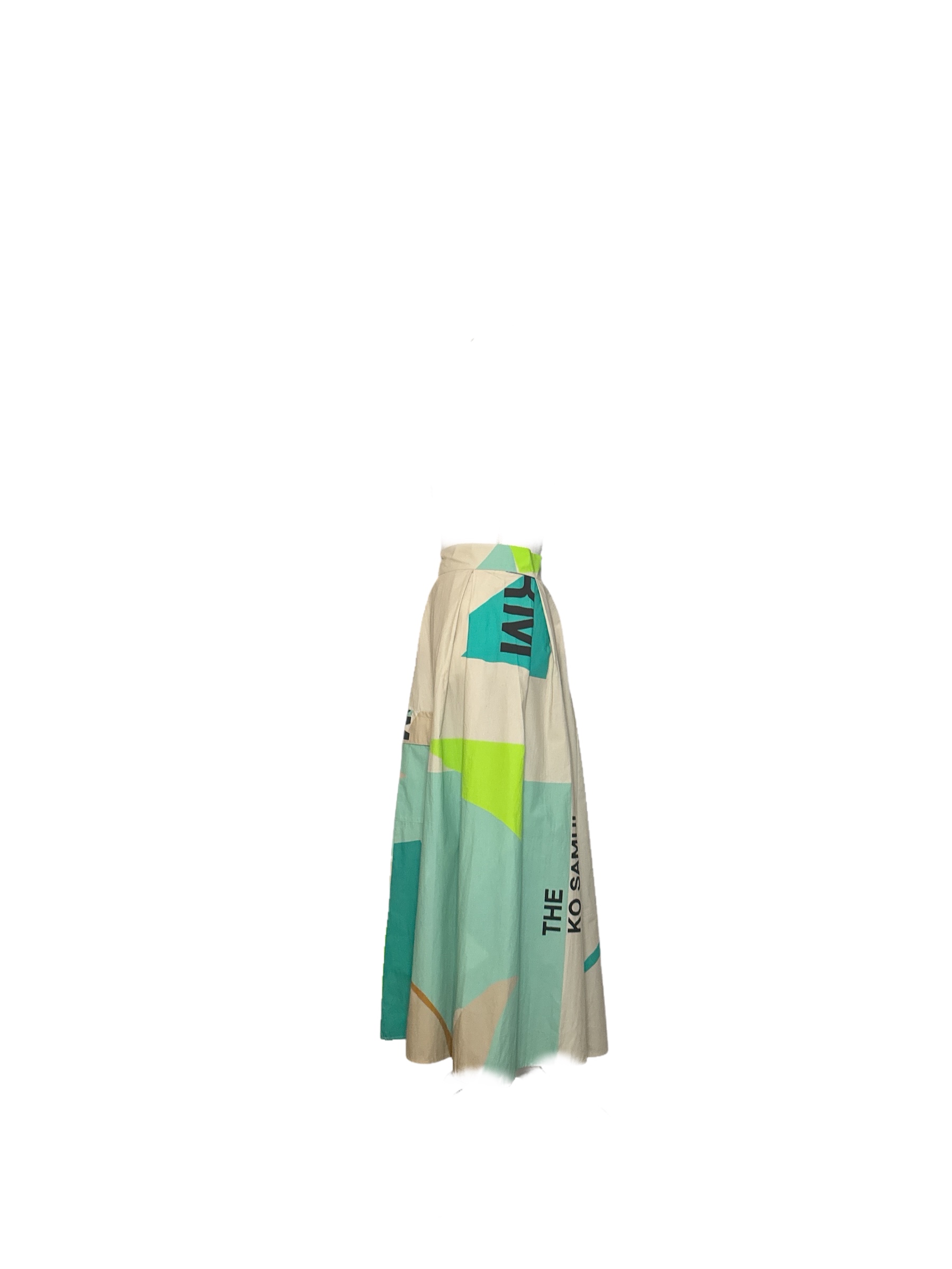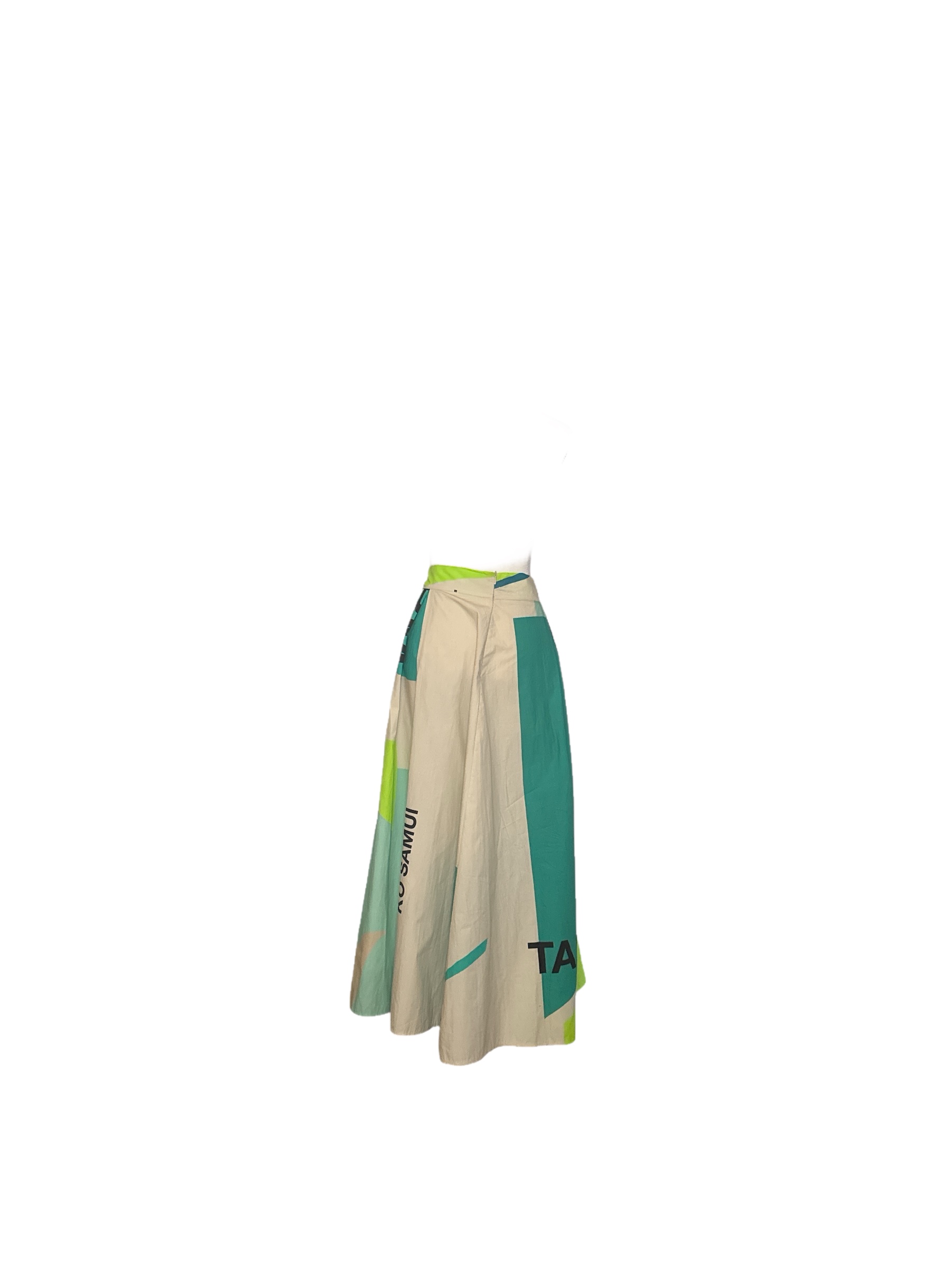 Gonna dai colori predominanti verde acqua, verde lime, beige e bianco panna.,