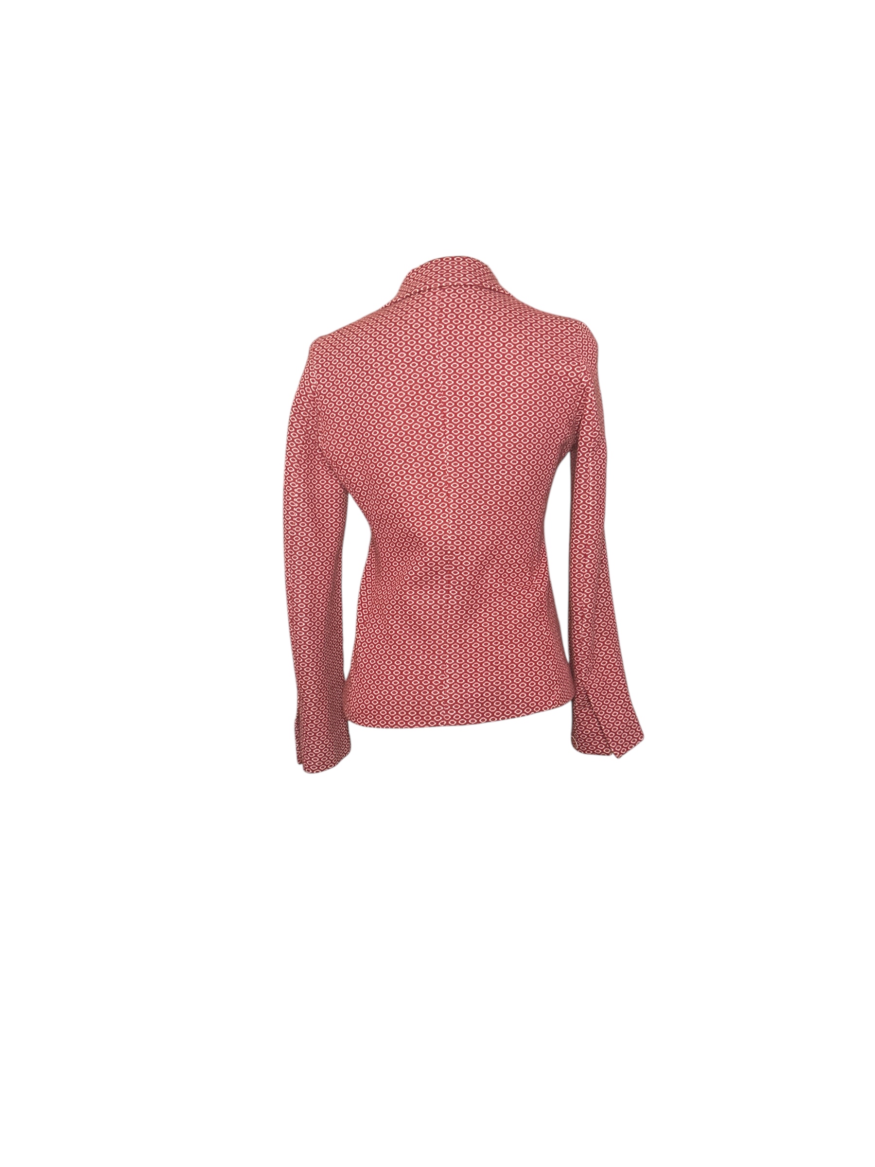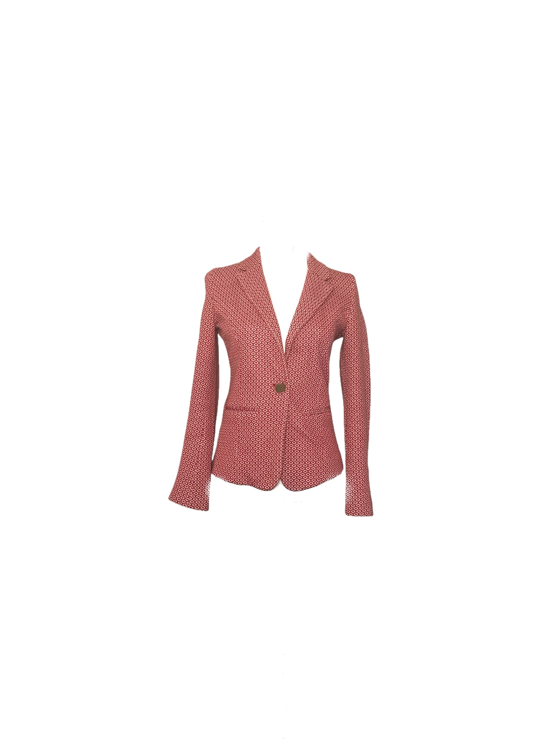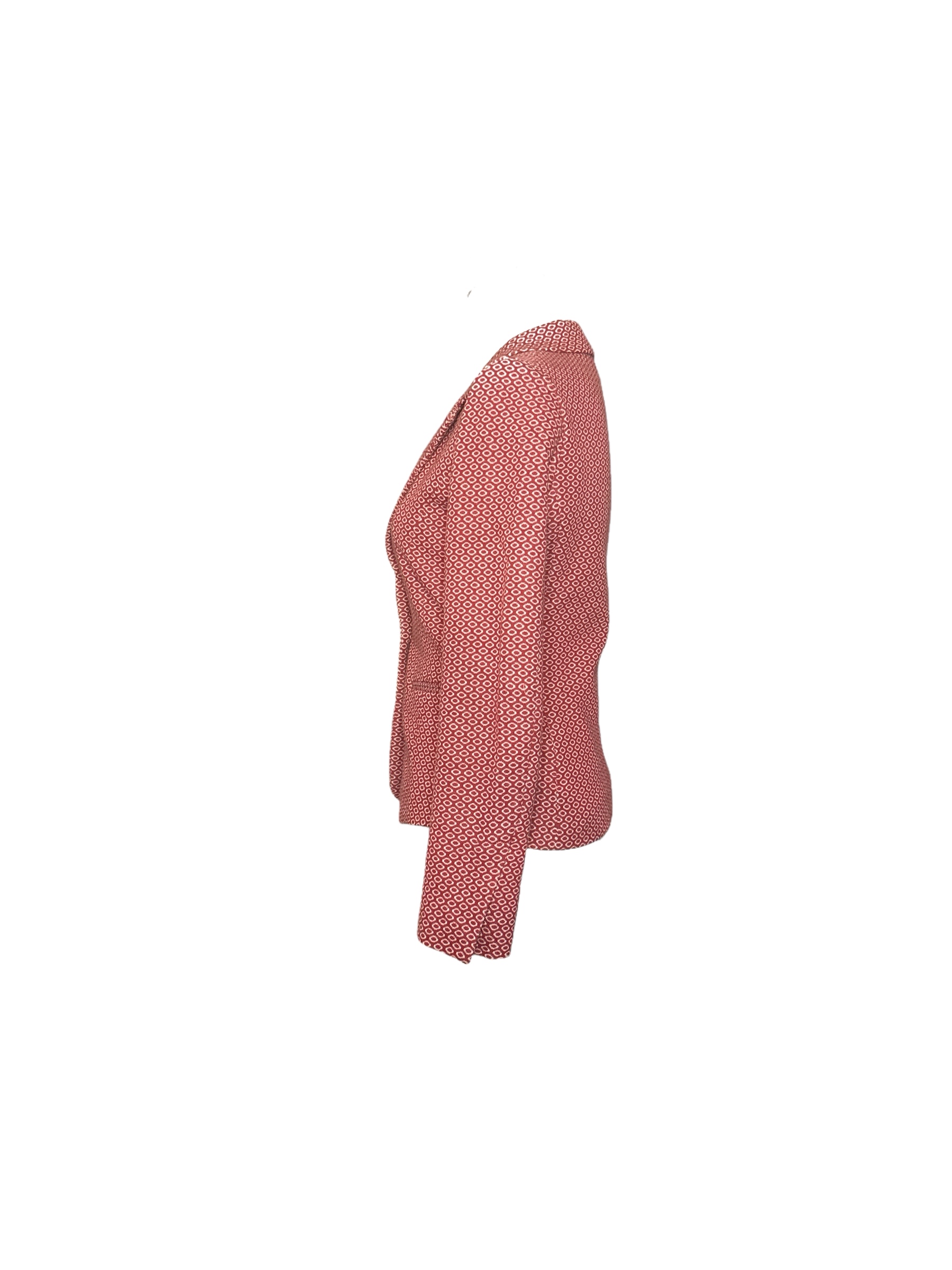 Colore principale rosso mattone con micro fantasia geometrica bianca.