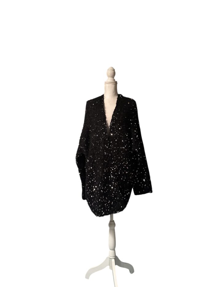 Cardigan nero con dettagli scintillanti.
