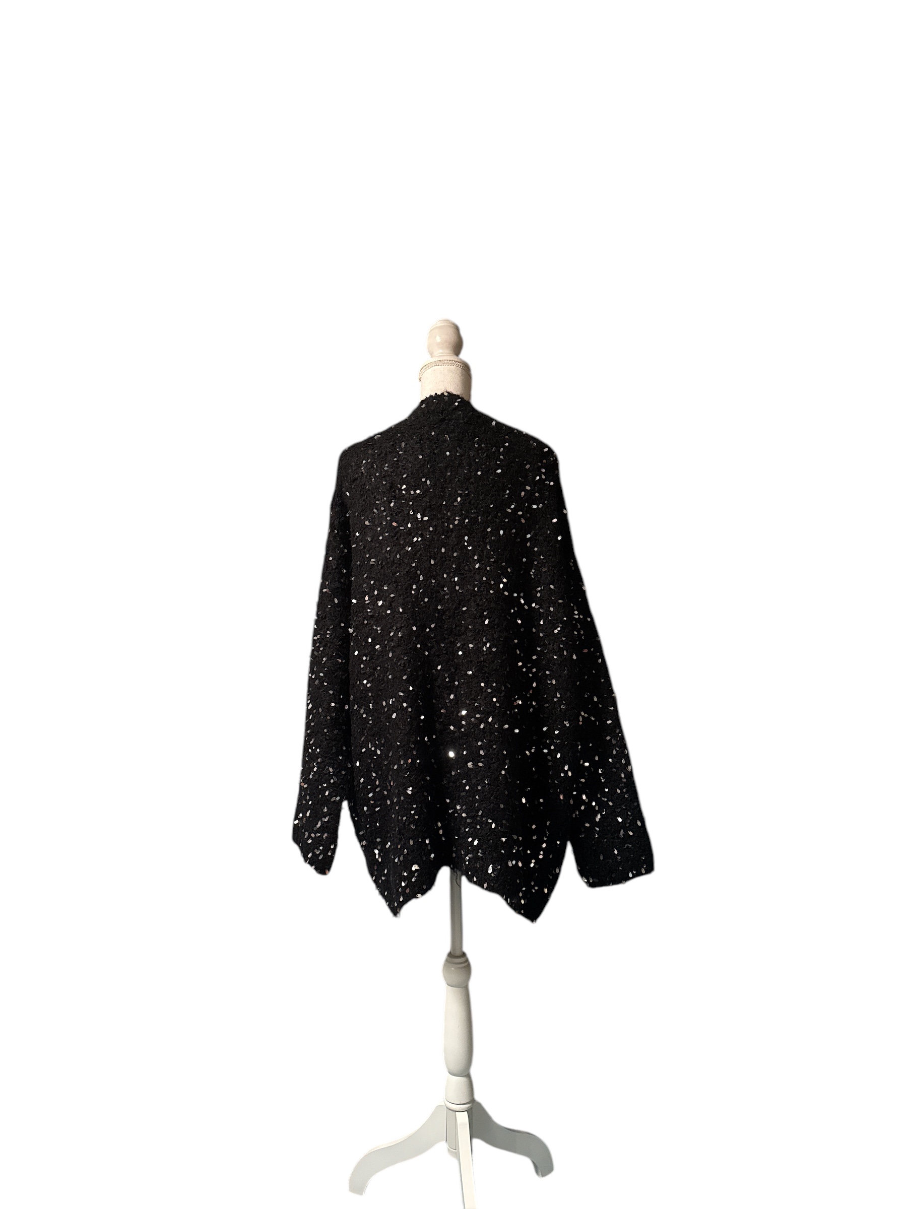 Linea morbida e oversize con manica ampia e un profondo scollo a V.