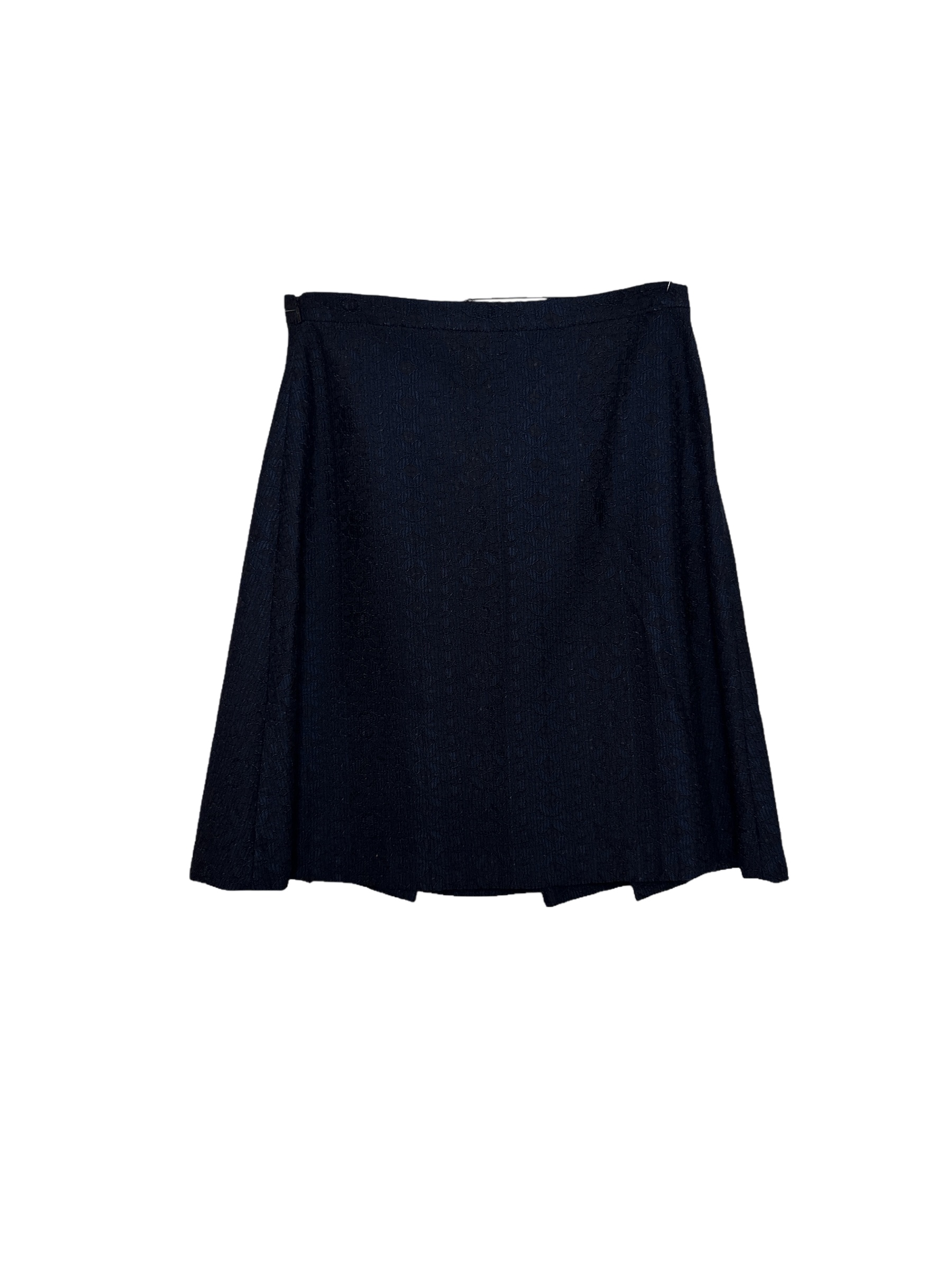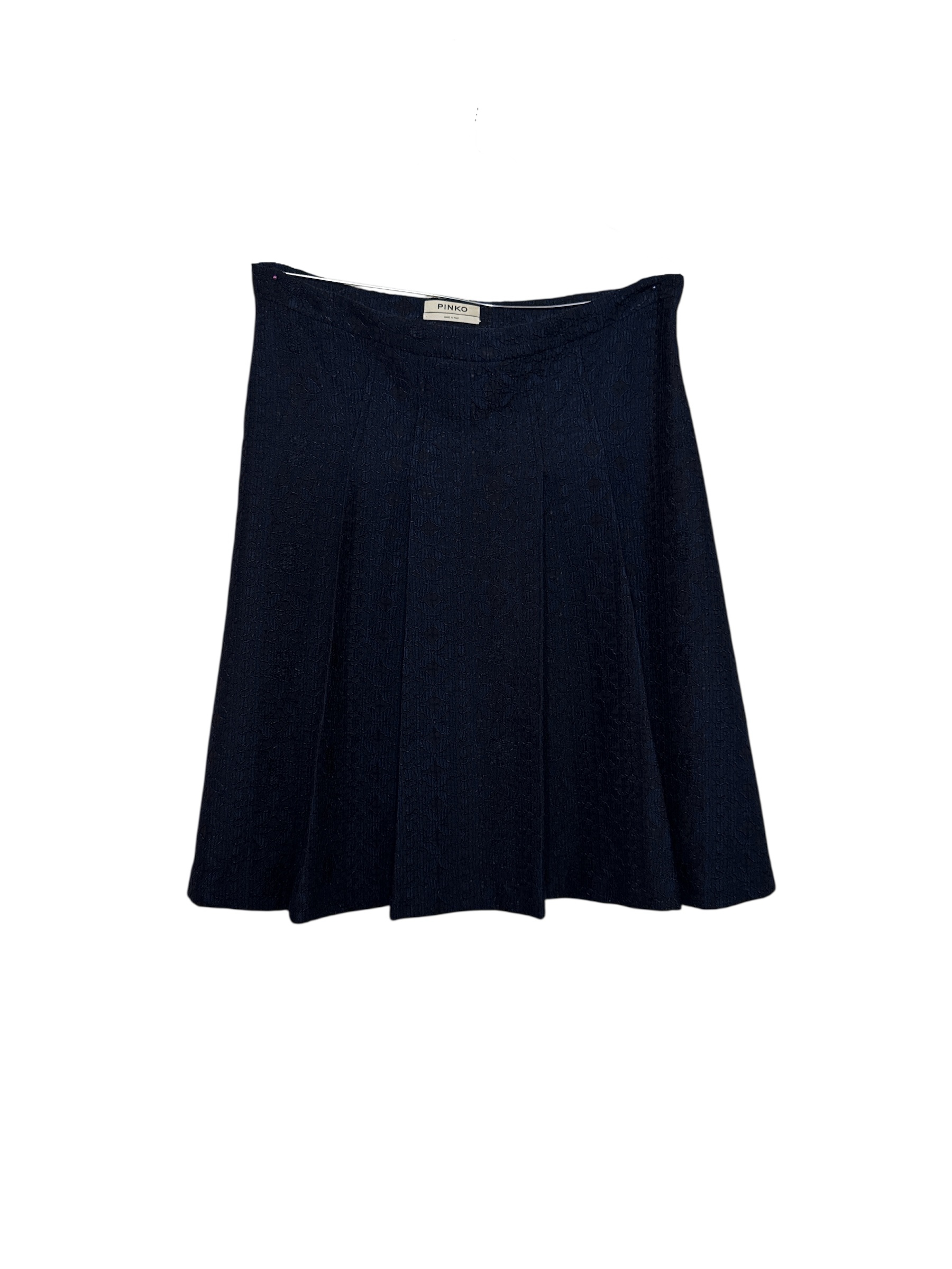 Gonna blu scuro con tessuto leggermente lavorato a motivo jacquard tono su tono.