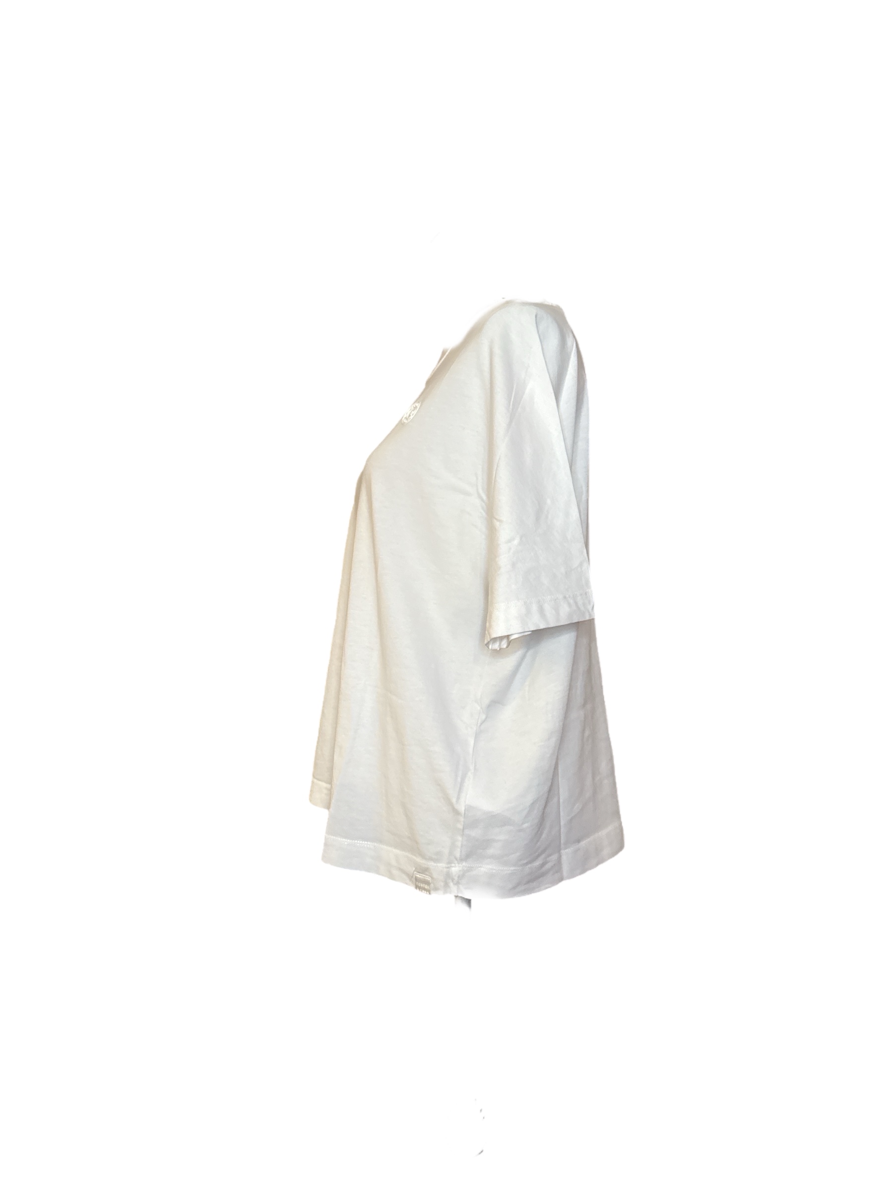 Girocollo classico e piccolo logo ricamato sul lato sinistro.