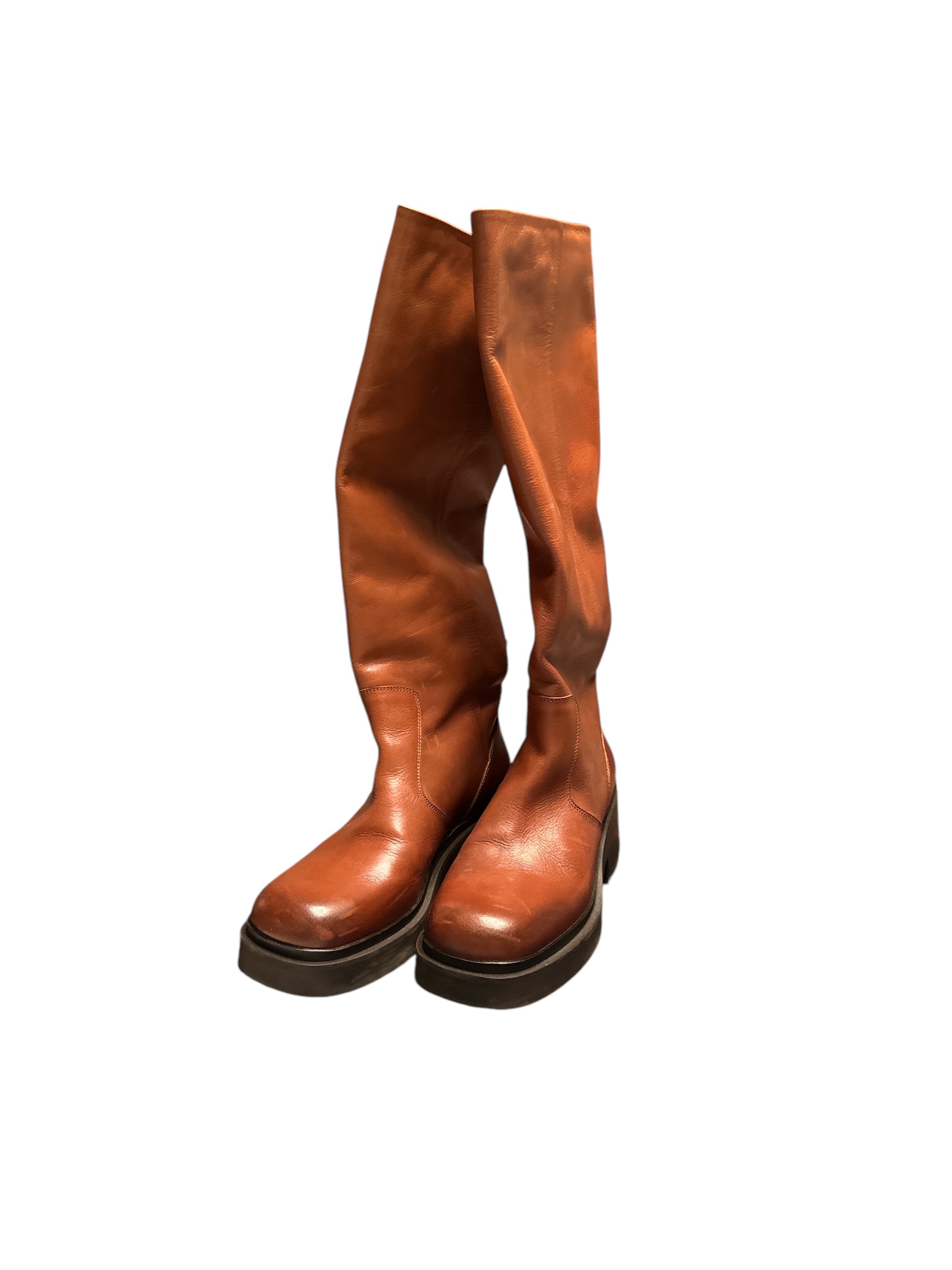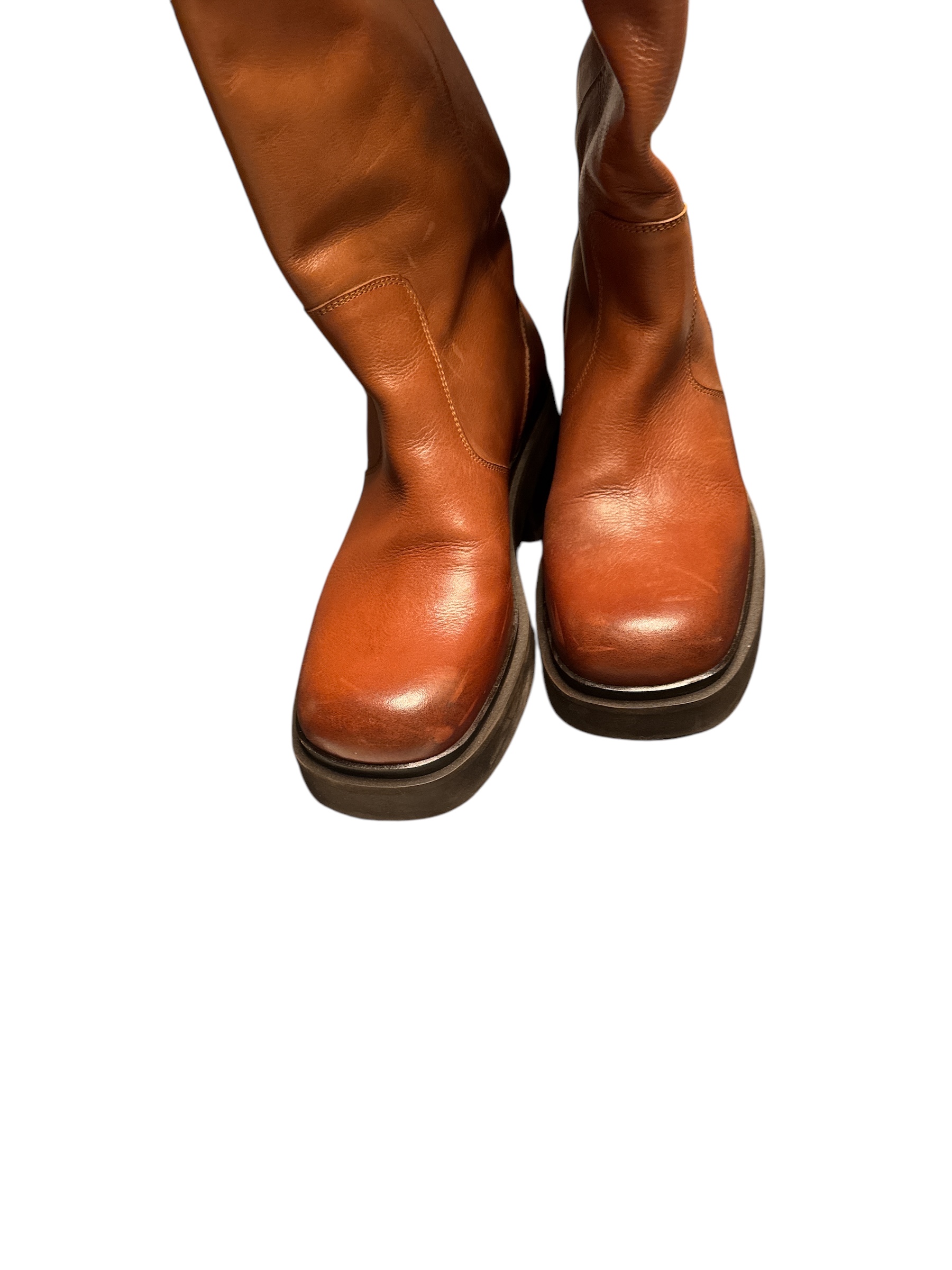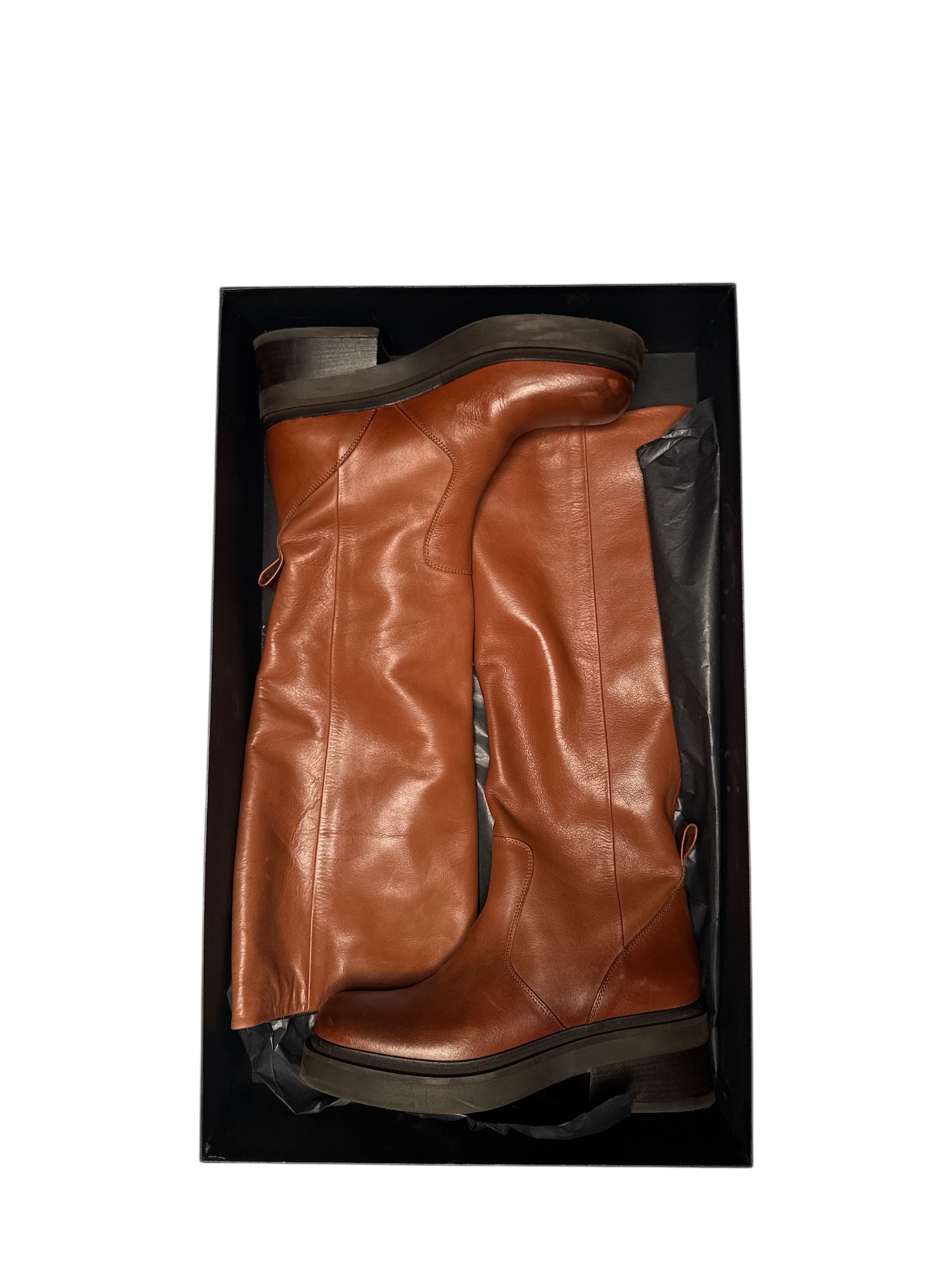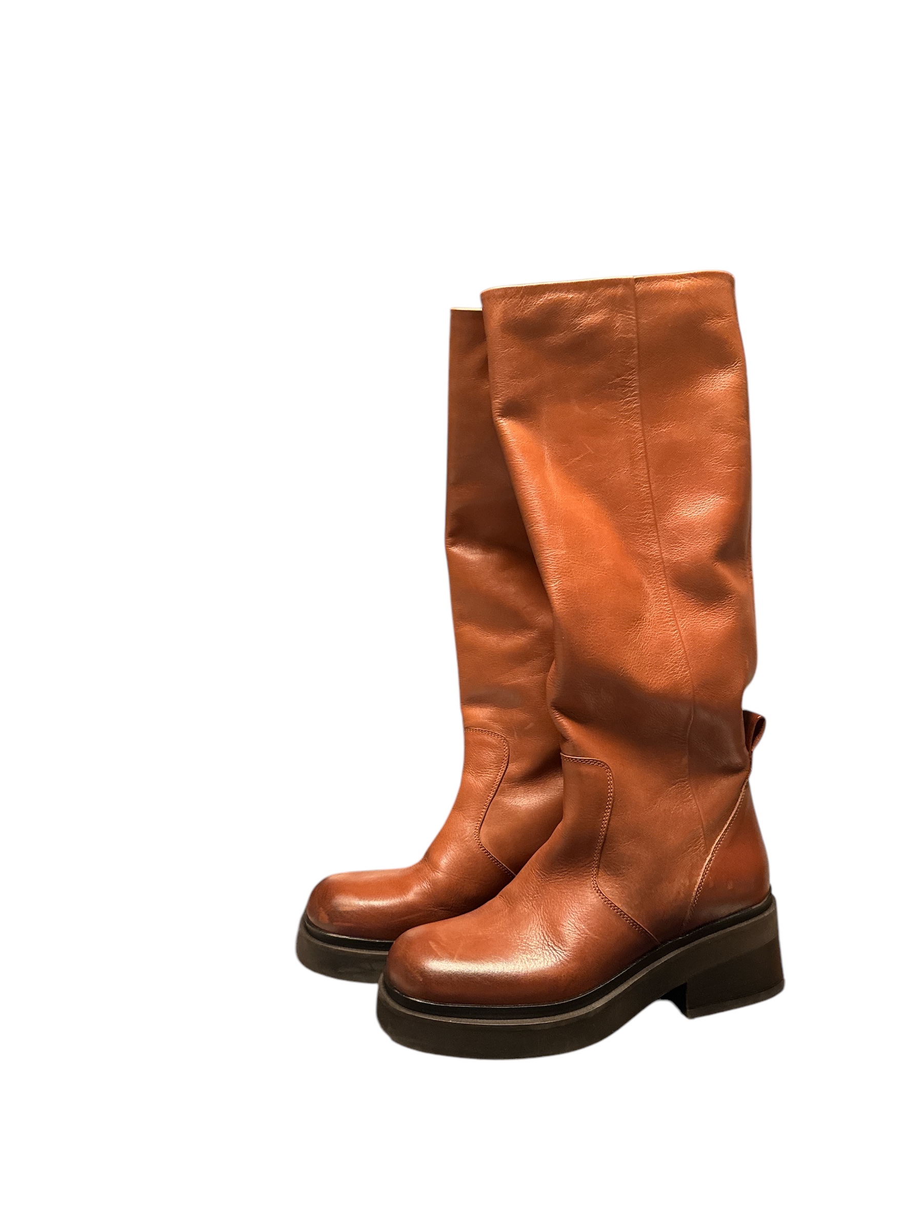 Stivali in pelle color cuoio con gambale morbido e avvolgente.