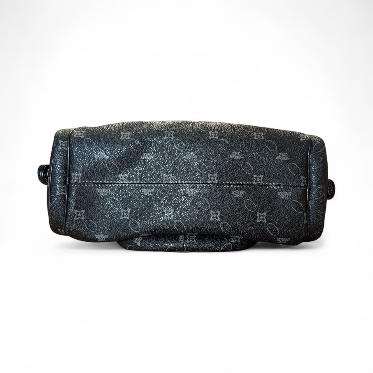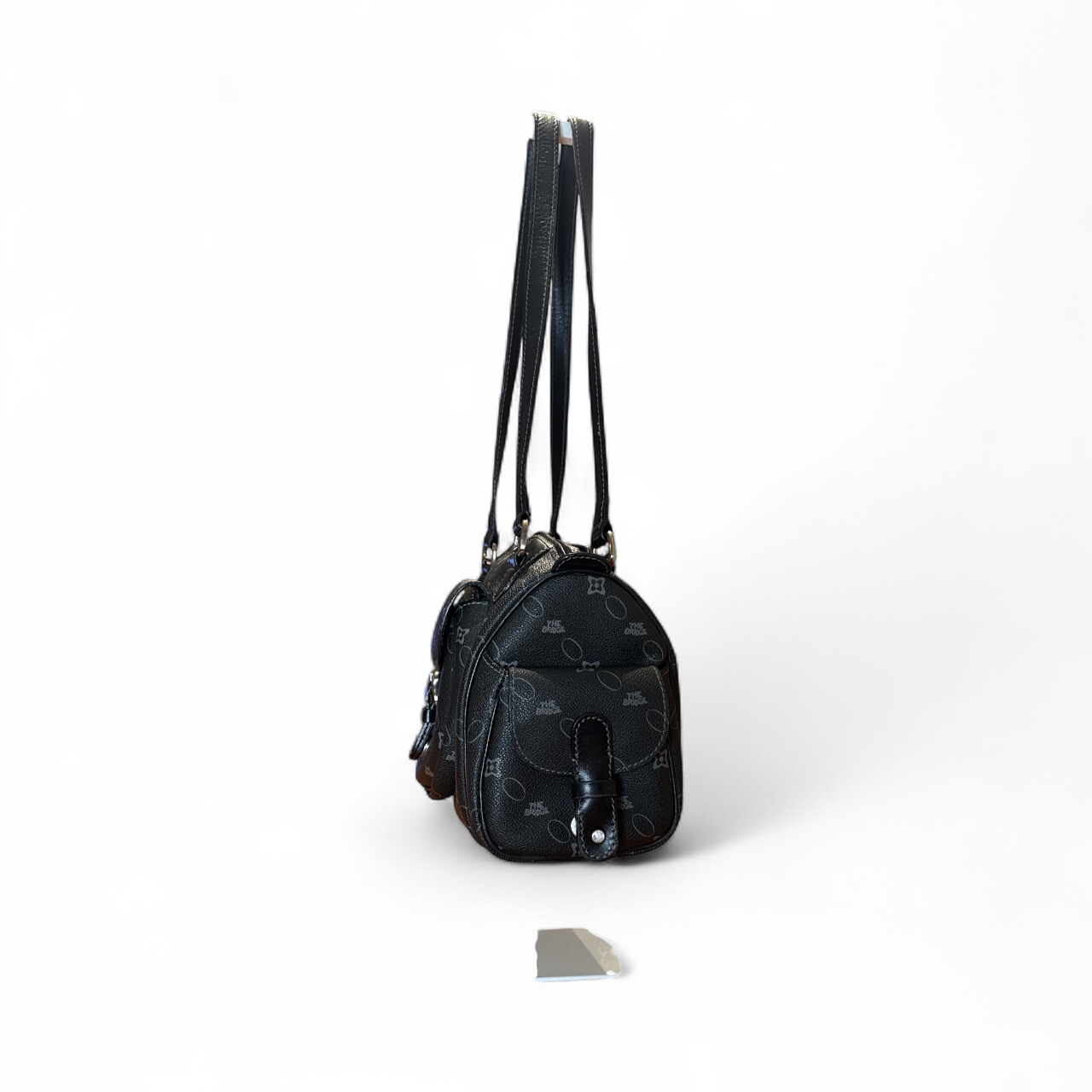 Borsa nera in pelle, forma rettangolare con bordi leggermente arrotondati.