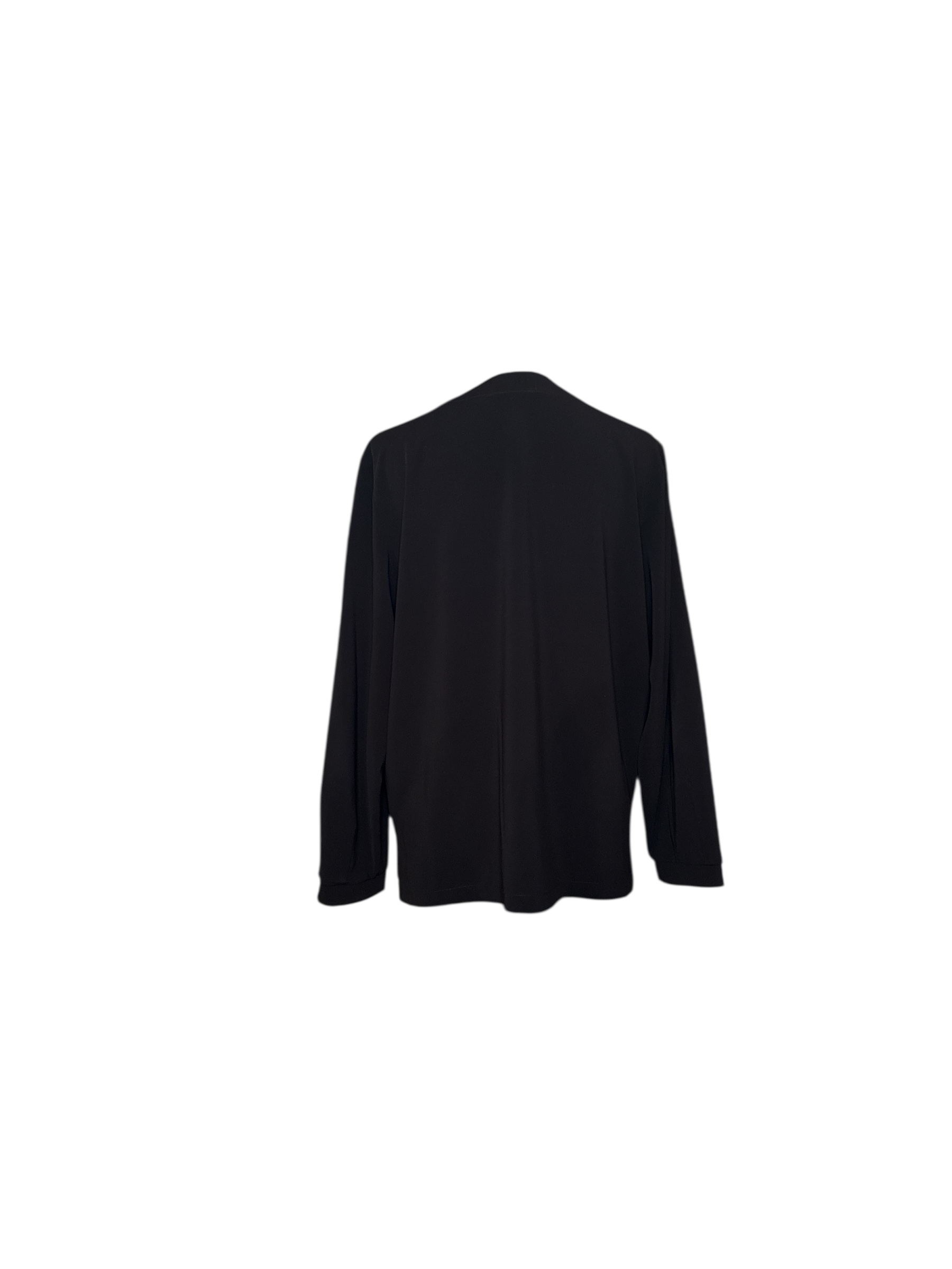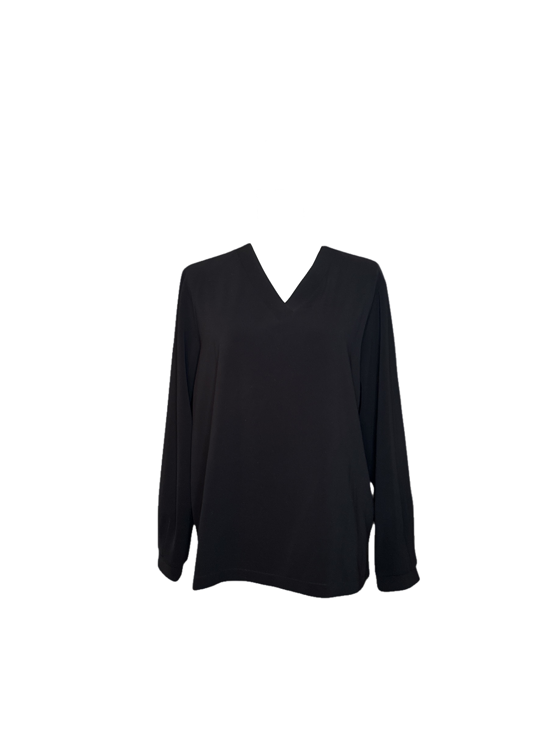 Blusa nera Via Masini 80 con scollo a V e maniche lunghe.