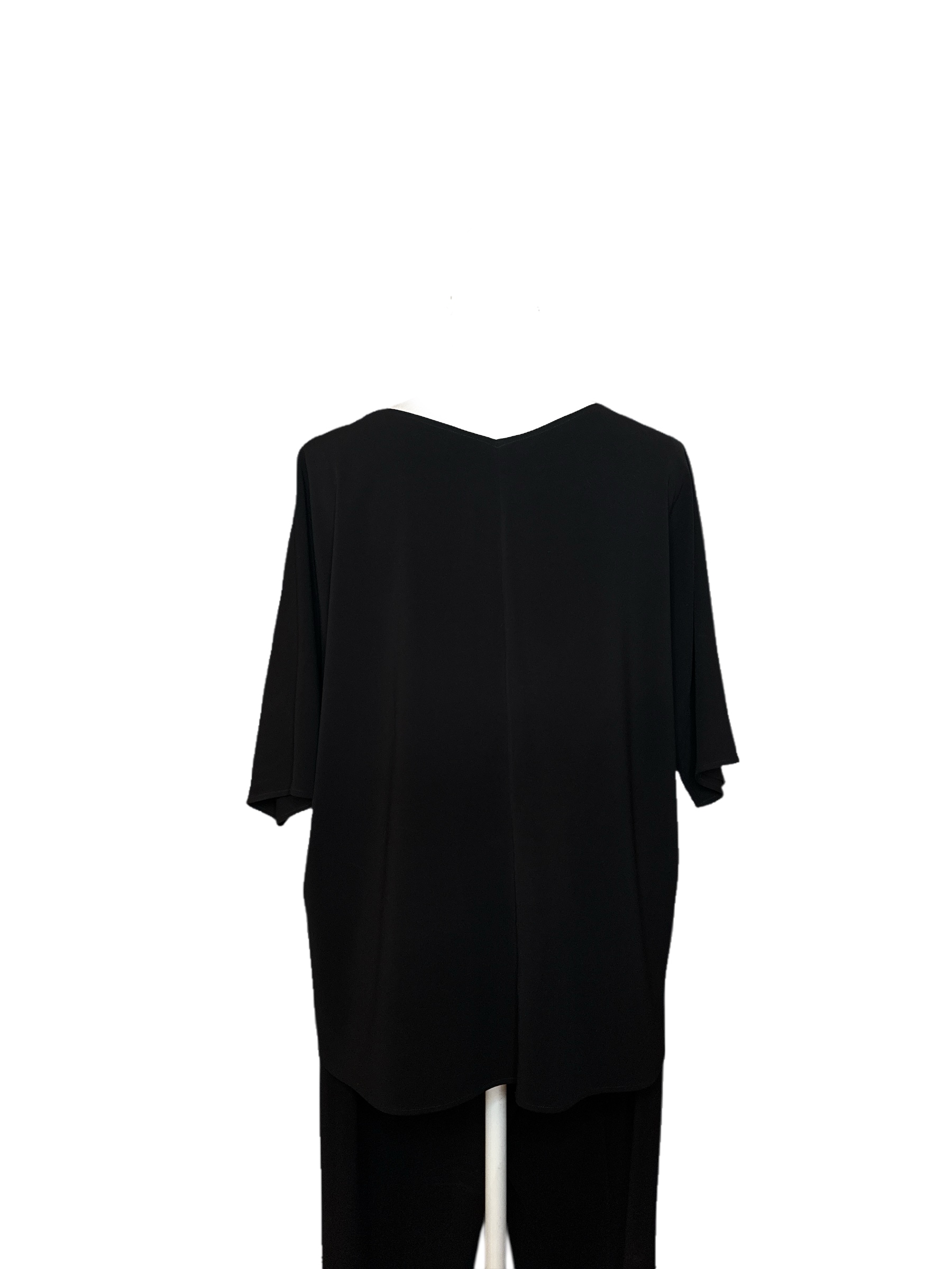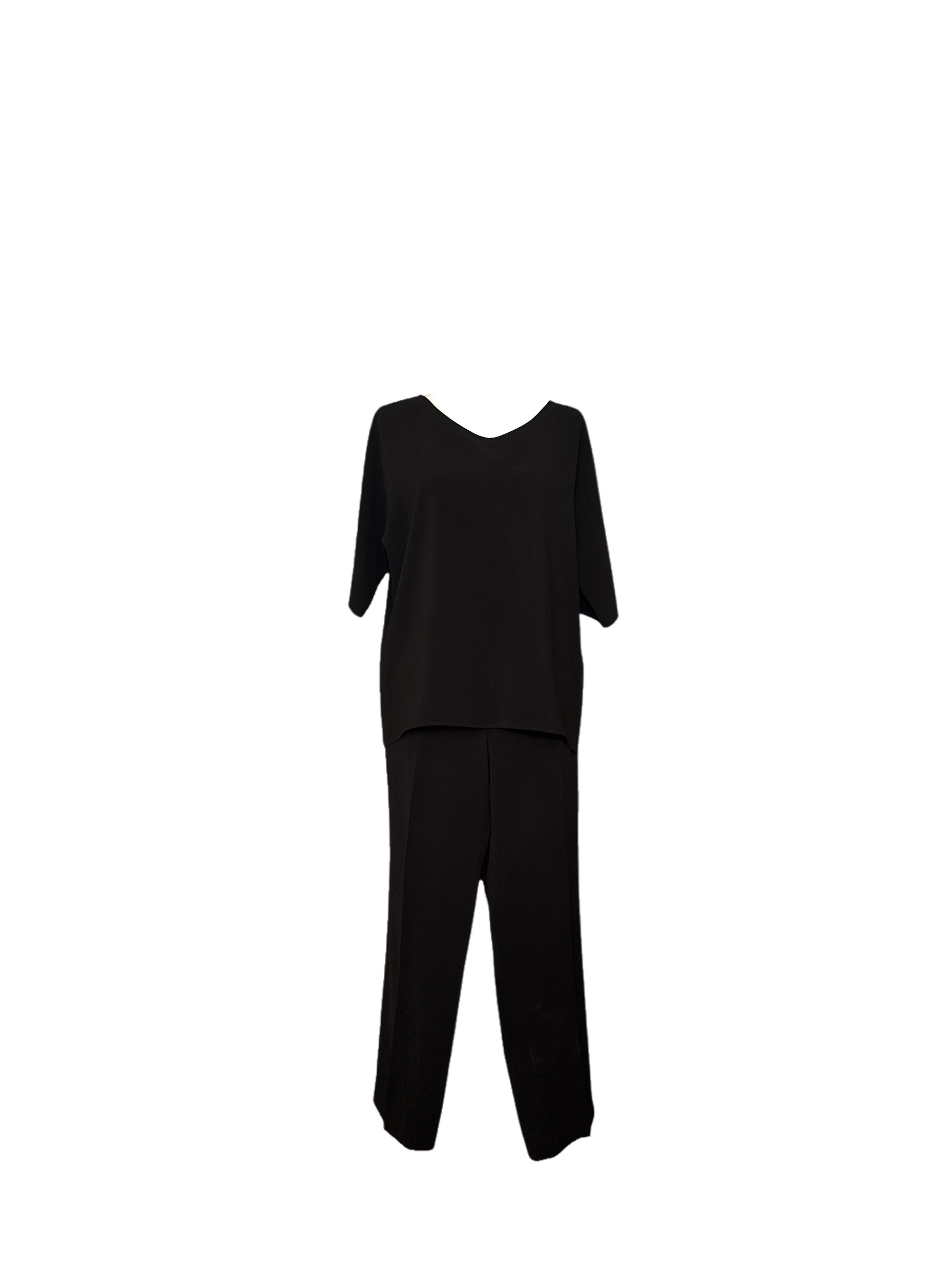 Completo composto da blusa con scollo a V e pantalone a gamba dritta.
